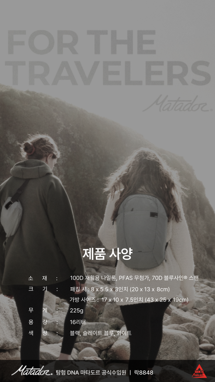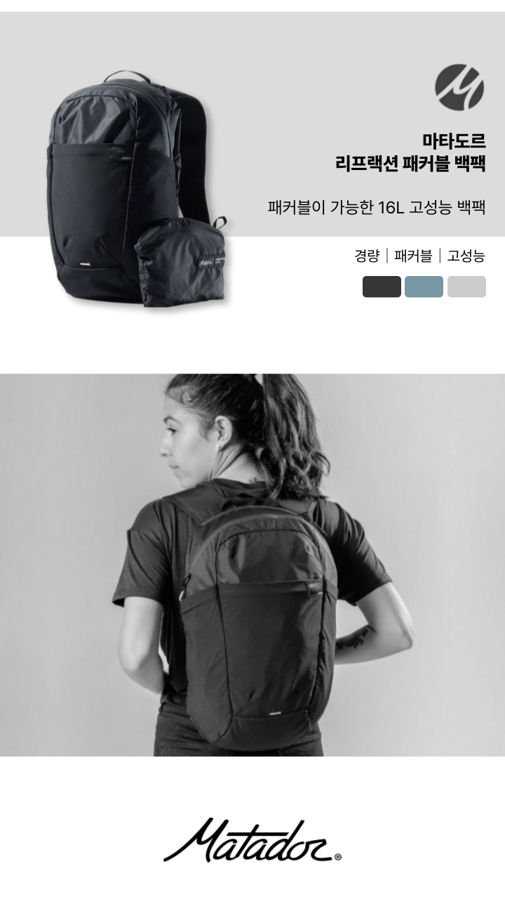 이미지 확대보기마타도르 리프랙션 패커블 백팩 / MATOG2DP01BL